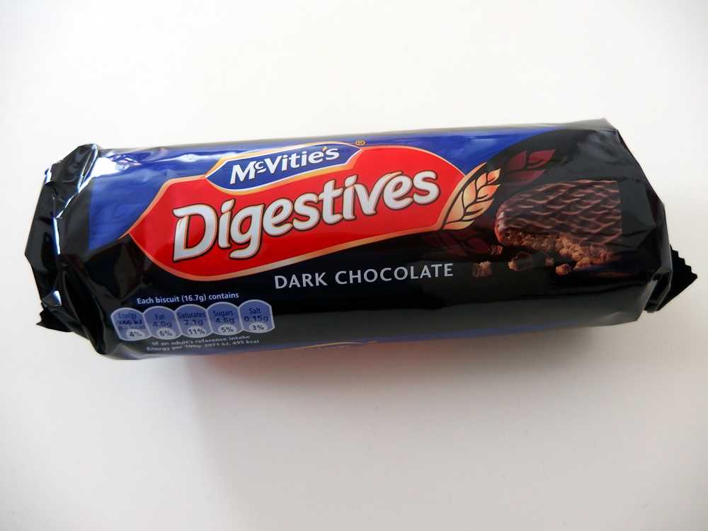 ビスケット! 日本のスーパーではだんだん隅のコーナーに押しやられている感がありますが、英国ではまだまだチョコレートと並ぶお菓子の基本です。スーパーでの取りあつかいも日本よりもずっと種類豊富でいろいろ選べます。その中で日本よりも人気がありそうなのがダイジェスティブ(全粒粉・麦芽)ビスケット。日本でもひそかに好まれているのかなあ・・あるといえばある。一番有名なのがマクビティですね。マクビティは英国で初めて全粒粉をつかってビスケットを焼いた老舗メーカーです。