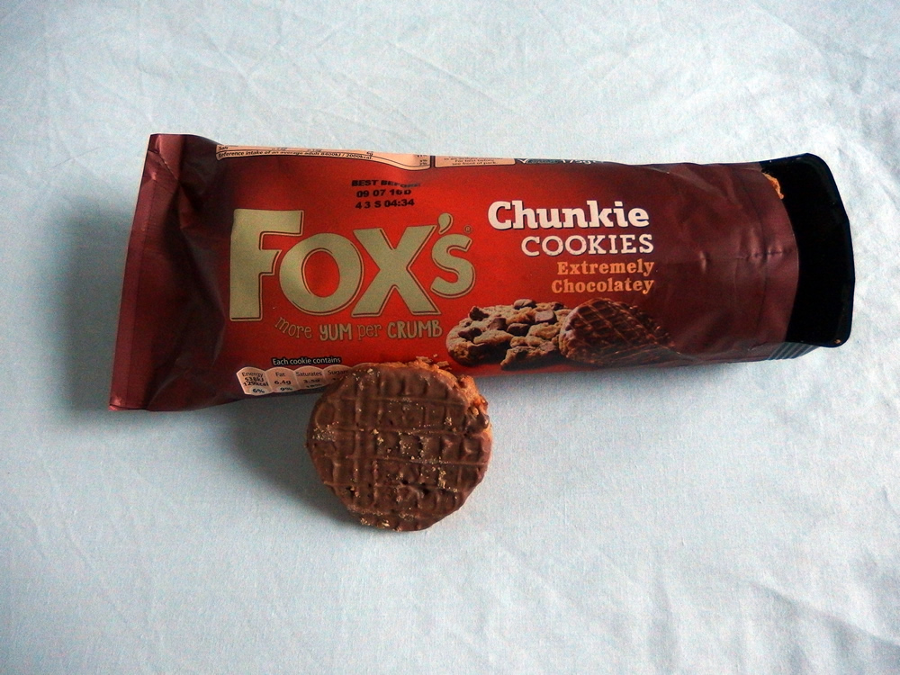 次は、フォックスクッキーです。これはダイジェスティブじゃないのですが、中にチョコチップがたくさん入っていて、さらにはチョコレートのコーティングがされています。こってり甘いです。