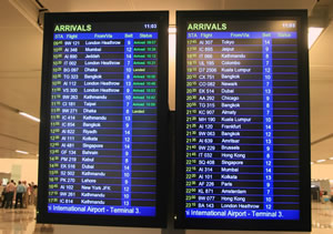 案内ディスプレイで、荷物を受け取るベルトの番号が表示されていますので、まあおそらくTokyoと表示されている自分の乗ってきた搭乗便名に表示されているターンテーブルへと向かいましょう。税関 custom