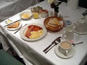 かといって、せっかく英国に来てコンチネンタルで済ますのは、なにか日本旅館に泊まってパン食で済ますのに似ている。 ここは昼食を抜いてでも、フル・イングリッシュを食べておいたほうがいい。ま、せめて1回は食べましょう。