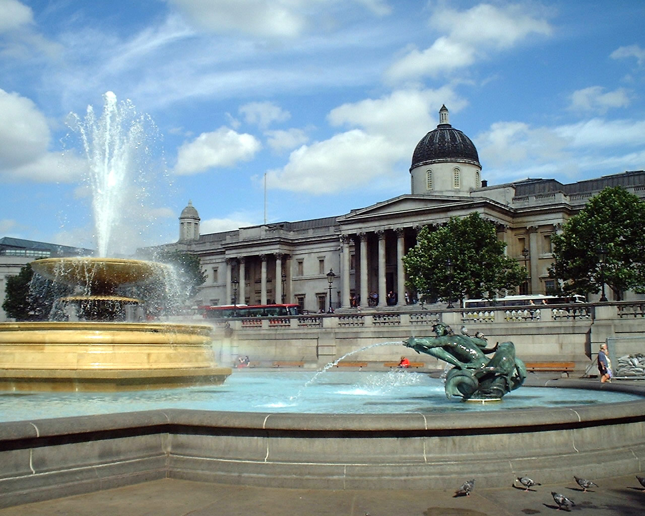 おお、噴水がきれいだぞ!鳩が多くてちょっと汚なっぽいけど・・・でもやっぱりロンドンの中心・・・人も多いしカッコええな。