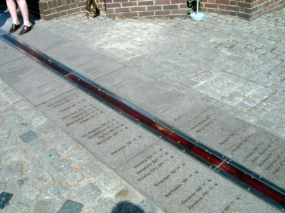 やったー!グリニッジじゃ〜天文台じゃ〜!0時じゃ0時じゃ・・・と意味不明の高まる気分を押さえつつ・・・・・・い・・意外と質素なもんですな・・・・・こんなんでいいんすかね・・・・・ここが基準なんでしょ?ここで日付が変わるんでしょ〜(変わらない・・変わらない・・・)・・・・・しかしみなさん妙なことに順番待ちして記念写真撮ってますな。