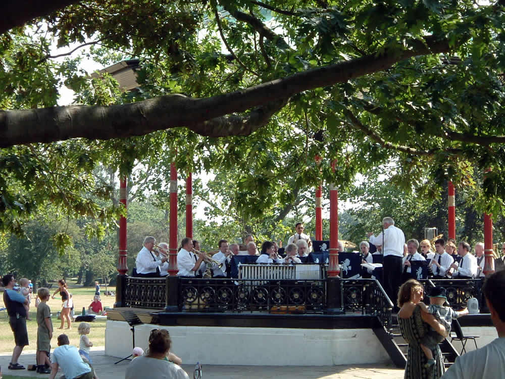 たくさんの人が集まってるとは言いがたいんだけど、みんなゴロゴロしながら音楽を聴いてる日曜日の公園って、なかなか幸せな光景であります。このために英国まで来たと言っても過言でもないくらいっす。