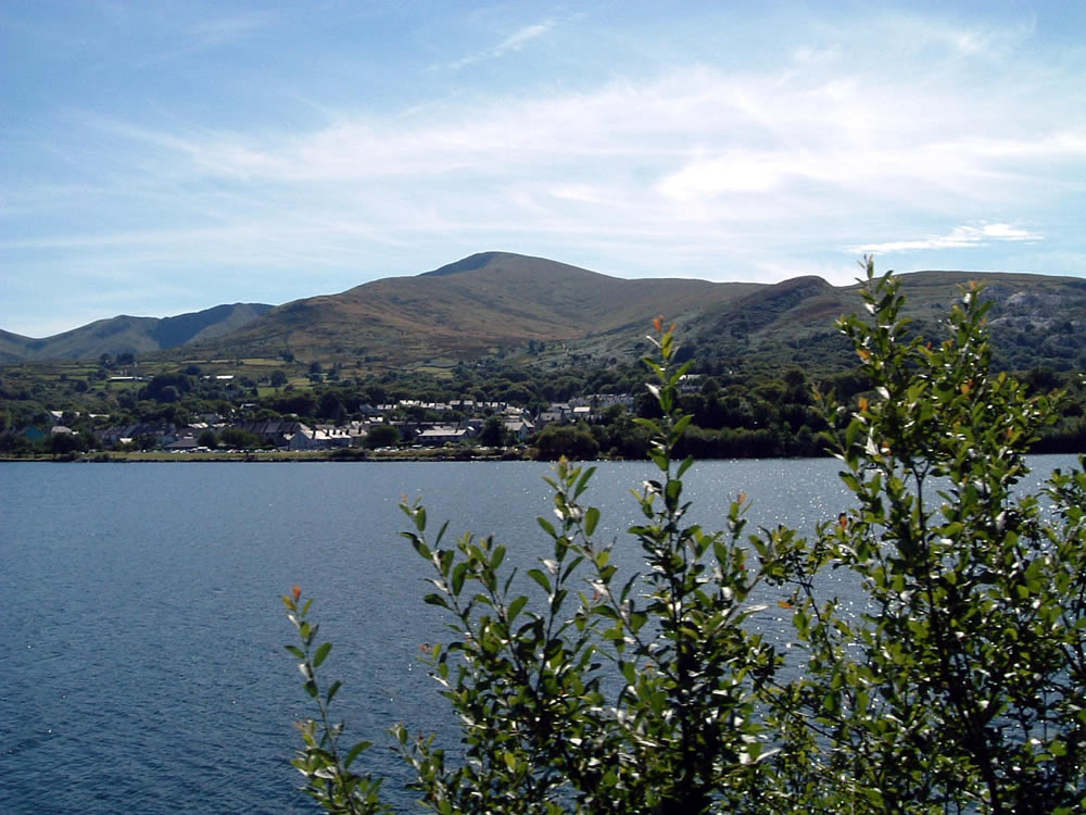 湖畔から望むスノードン山B: そんな体力もヒマもありません。せっかく日本から来たっていうのにチケット売り切れで、湖畔鉄道でも待たされたし。