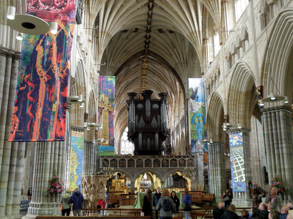 わかればもう少しこういった所も楽しめるのではないかとは思いますけど、無理して調べていくもんでもないかなと思ってしまうのであった。 エクセターに来る観光客のほとんどが大聖堂目的のようで、ここだけは雨にもかかわらず混んでいます。