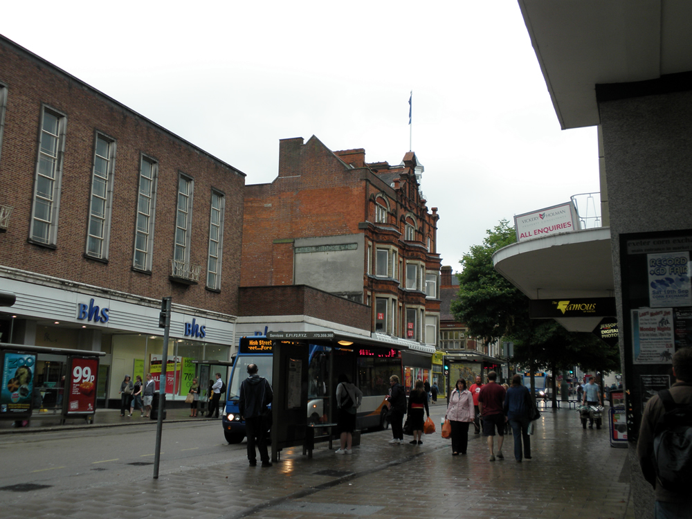 トーキーからエクセターまではバスで行ってみました。安いし楽だし、多少時間がかかるのもオツなもんです。結構混んでるんだよねえ、バス。週末のショッピングはエクセターっていうのが、トーキー地方のスタンダードのようですな。日本の田舎ではあり得ないような混み方です。寒くて悲しくなりますな。半袖なんぞを着ているのは、ほんの数人だけ。人によっては真冬に着るようなトレンチコートやアノラックを着てらっしゃっています。英国の気候を侮るべからずです。