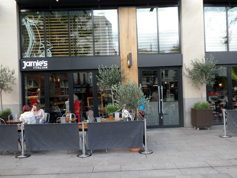 昼間に歩いたときに気になった、ジェイミー・オリバーのイタリアン・レストランに入ってみました。ジェイミーって誰じゃい!と思いの方に言っておきますと、英国のカリスマ・シェフみたいなもんです。
