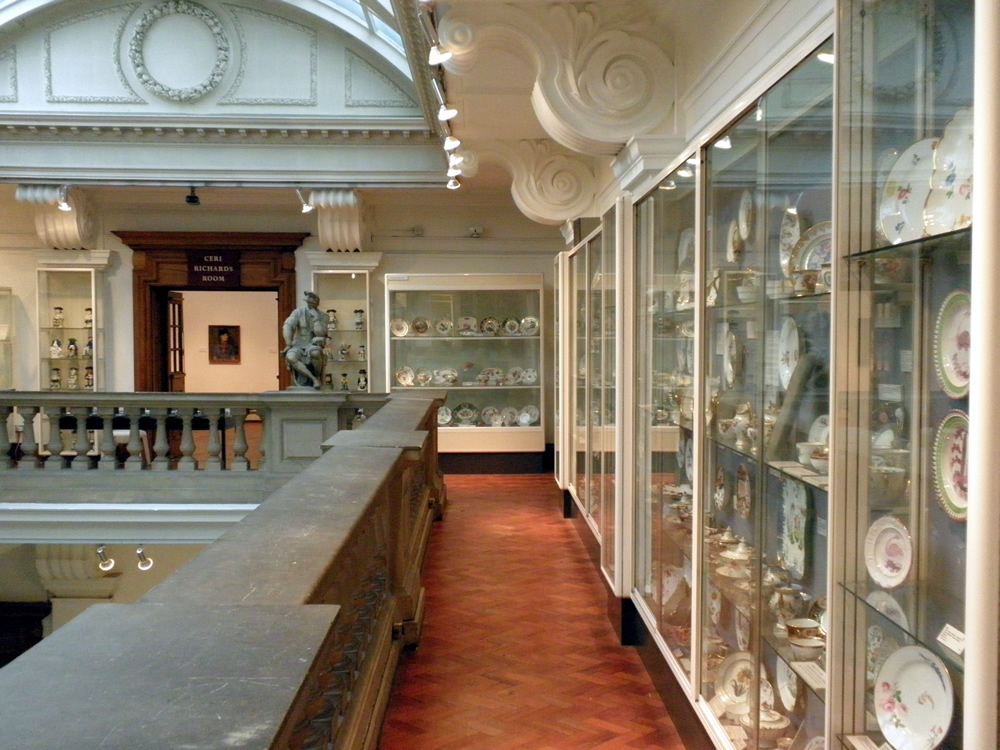 2階は陶器が中心のようです。さまざまな陶器が飾られています。スワンジーは陶器産業が盛んなようですね。あんまり町中で土産物として売られていないところを見ると、過去形なんだろうかと思う。陶磁器のコレクションは、世界から集めた様々なものがあります。建物もちょっとしたイタリアンでありまして、なかなかシャレてる感じがあります。さすが昔の金持ちです。