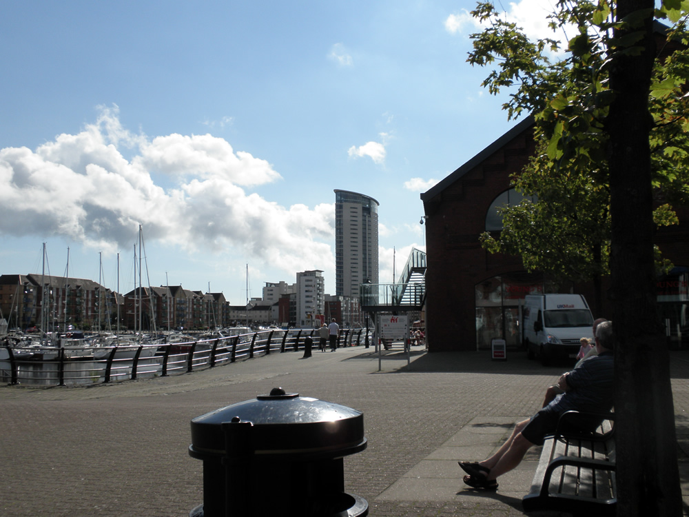 ウォーターフロントのエリアは、田舎くさいスウォンジーの中では、とても近代的でシャレたエリアです。この辺なら住んでみたくなるなあ・・・・・