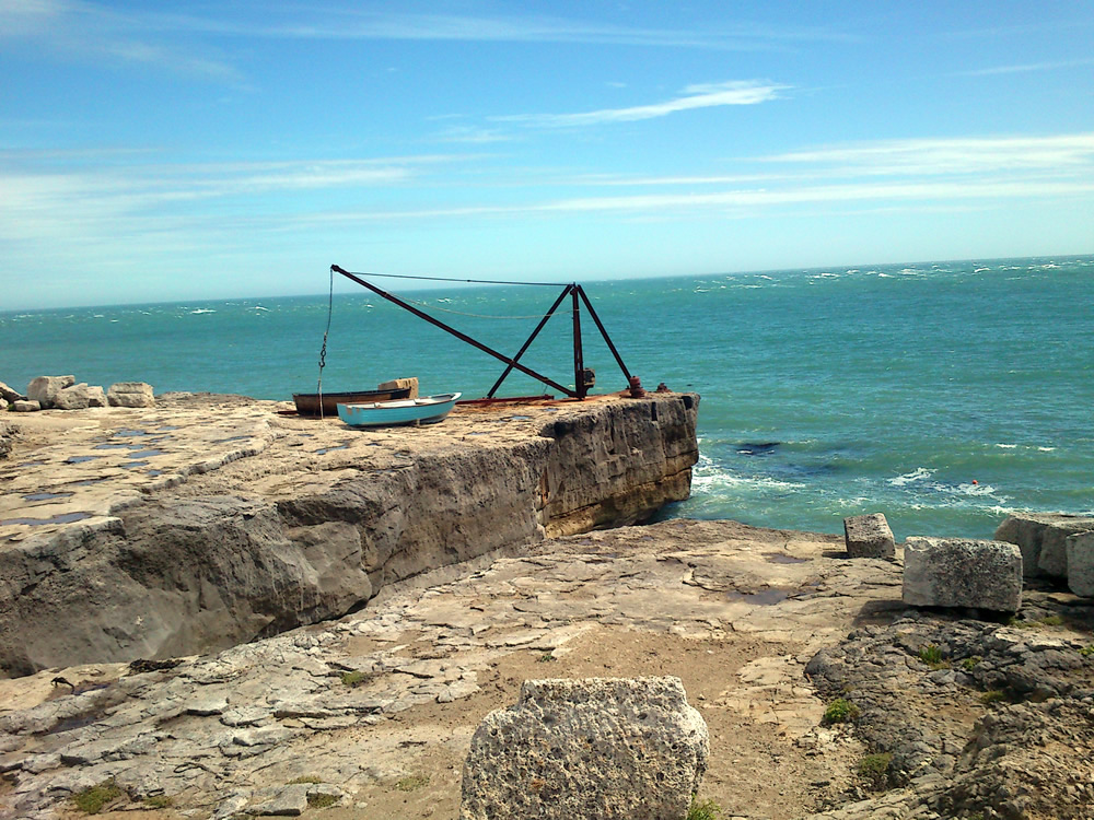 ポートランドは砕石が盛んな場所で、いたるところで採石場があったりします。島全体がジュラ紀の石灰岩でできています。ゴロゴロとした岩の海岸や断崖絶壁を見るのもまたいい感じがします。このはるか先にはアフリカ大陸があるのだなあ・・・と思いながら海を見てみるのも感慨深い。
