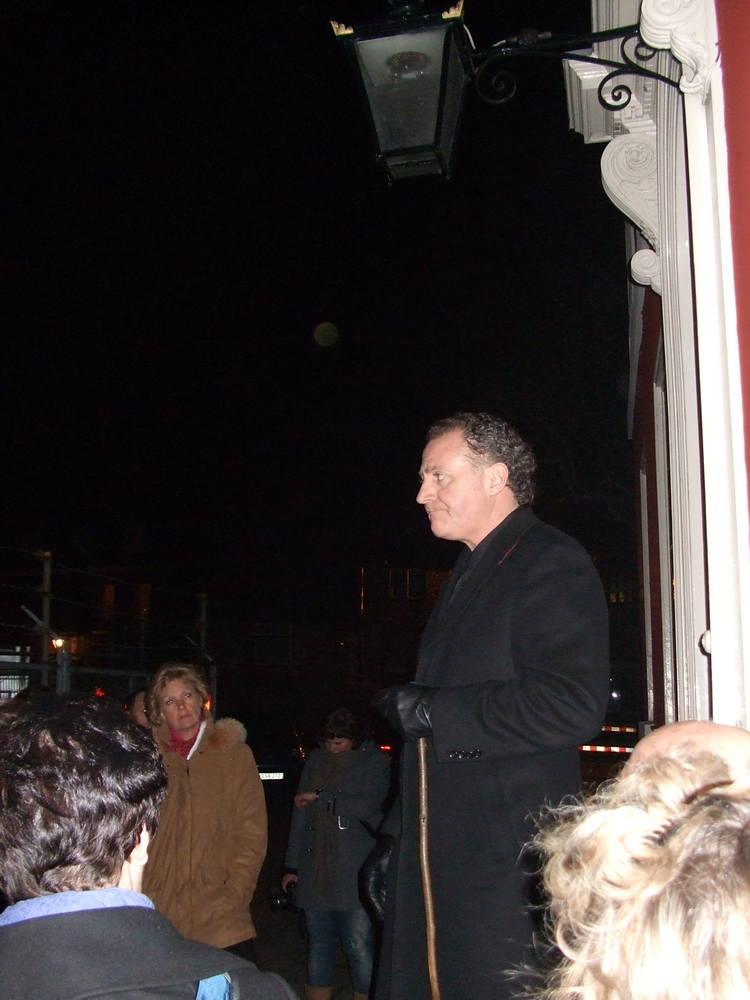 夜はゴーストウォークなるものにも参加してみました。幽霊ツアーが各地であったりするのが英国の面白いところ。ガイドの方は面白おかしく説明してくれますが、やっぱり少々強面で不気味な感じの人だったりします。参加者に媚びないあたりも英国風。しかし、ここで昔、人が死んだんだよ・・・てなことを平気でガイドして歩くあたりがちょっとしたカルチャーショックだったりする。基本的には幽霊がいるという噂があるんですよ、という個所をガイドされて見て歩くツアーなので、実際に幽霊が見られるわけではないです。いや、見えなかったと言うべきか、気づかなかったと言うべきか。幽霊の皆さんも、毎日毎日こう大勢で見学されたら、いいかげんやってられないのではないかな。