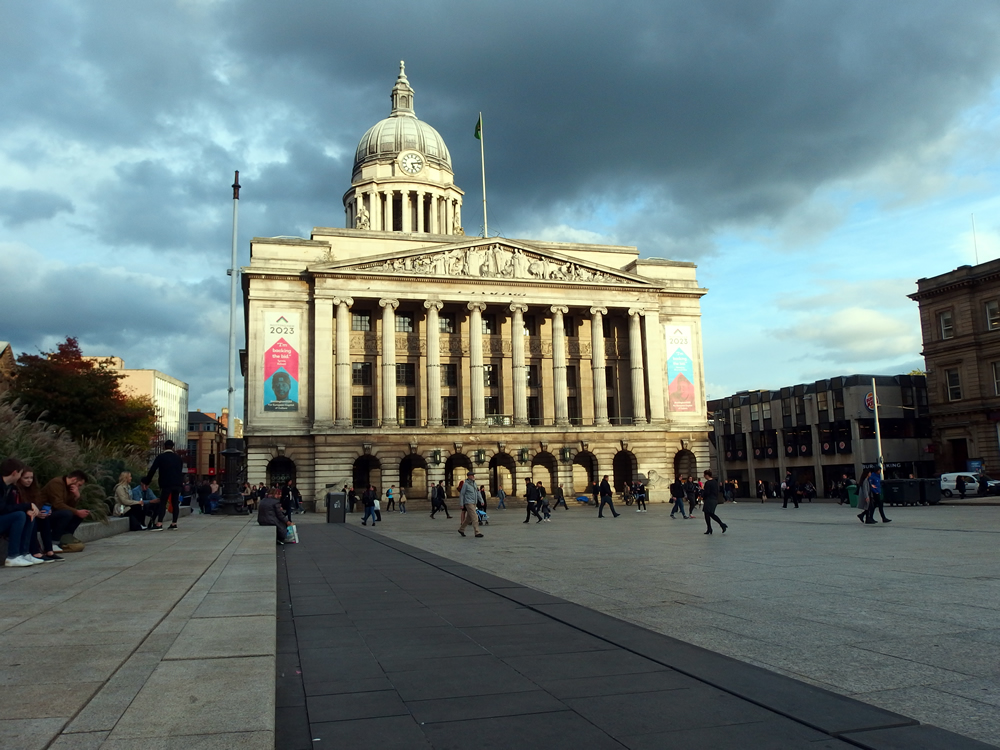ノッティンガムは美しい街として定評があります。実際そんなに美しいかどうかは疑問があるところですが、なかなかキレイにまとまった感じで、道路も細かく分かれていて面白い。たしかに不思議な魅力がある町です。ブリストルなんかと似たような雰囲気があります。