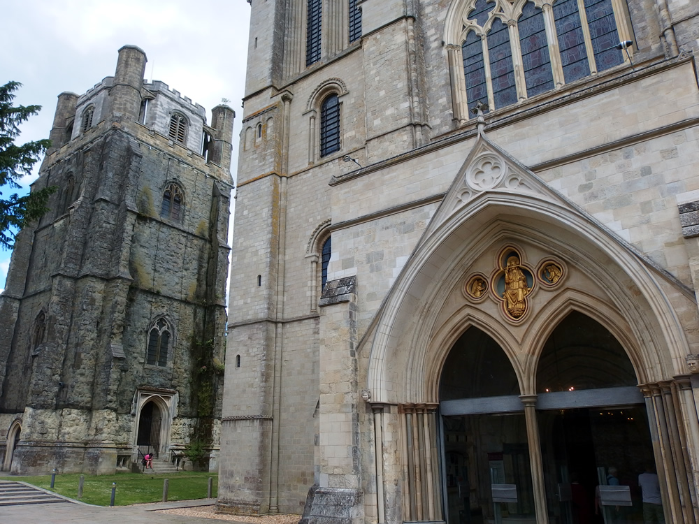 チチェスターはローマ帝国時代に拠点であったせいか、その後も南イングランドの宗教上の重要拠点だったようですね。大聖堂もなかなか壮大なたたずまいをしておりますよ。鐘の塔が別建てになっているあたりが面白い。後付けなんでしょうね。